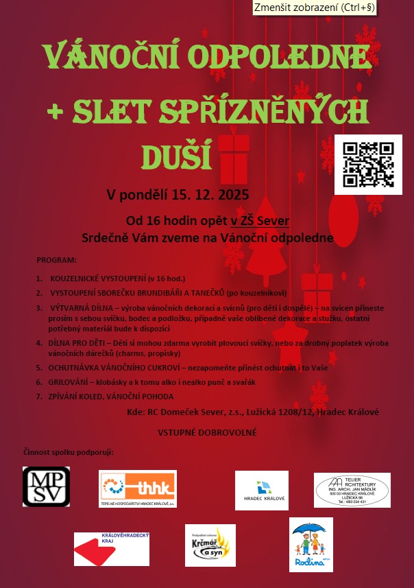 V pondělí 15.12. dopolední program ZRUŠENO - STĚHOVÁNÍ ZPĚT DO CENTRA V ZŠ SEVER